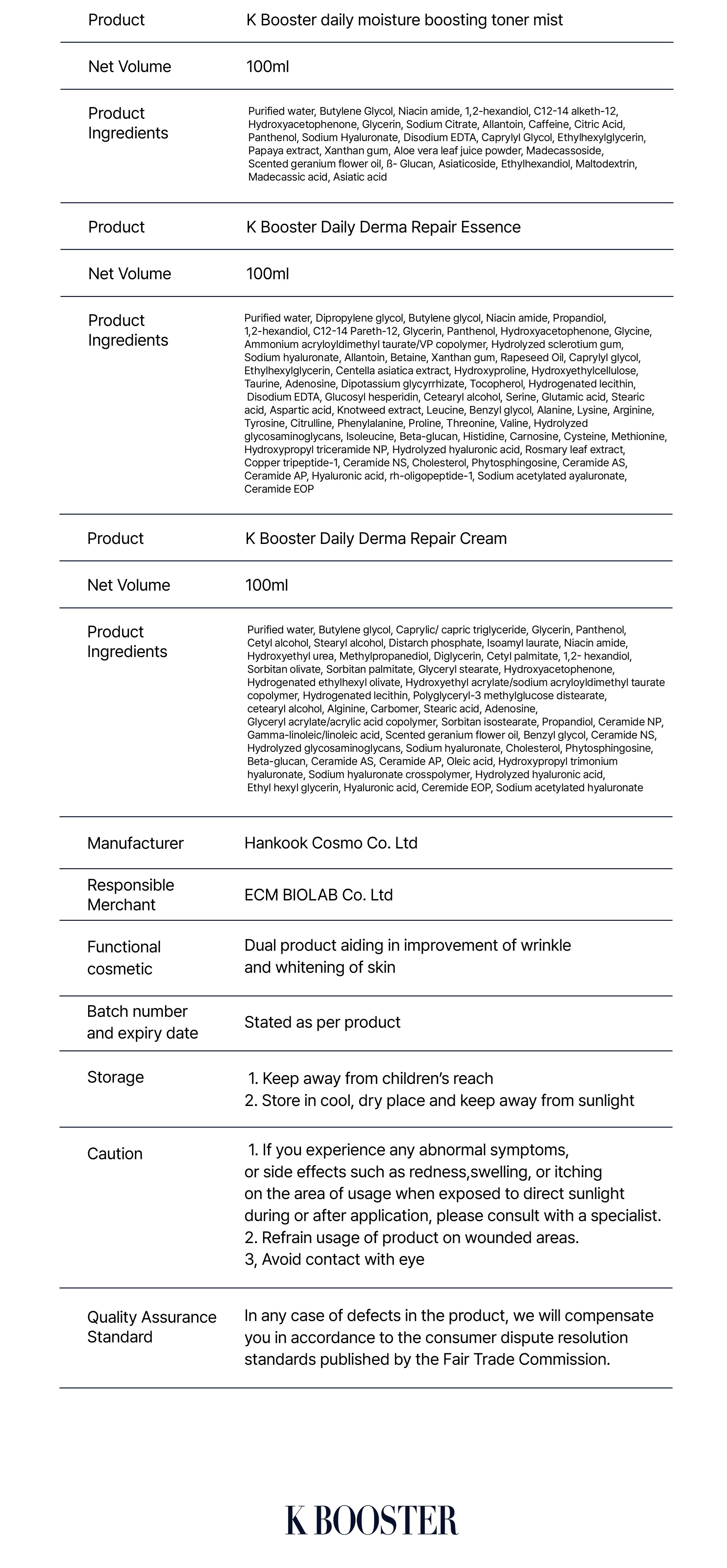 保濕鎮定噴霧(50ml / 100ml) 富含以下成分: