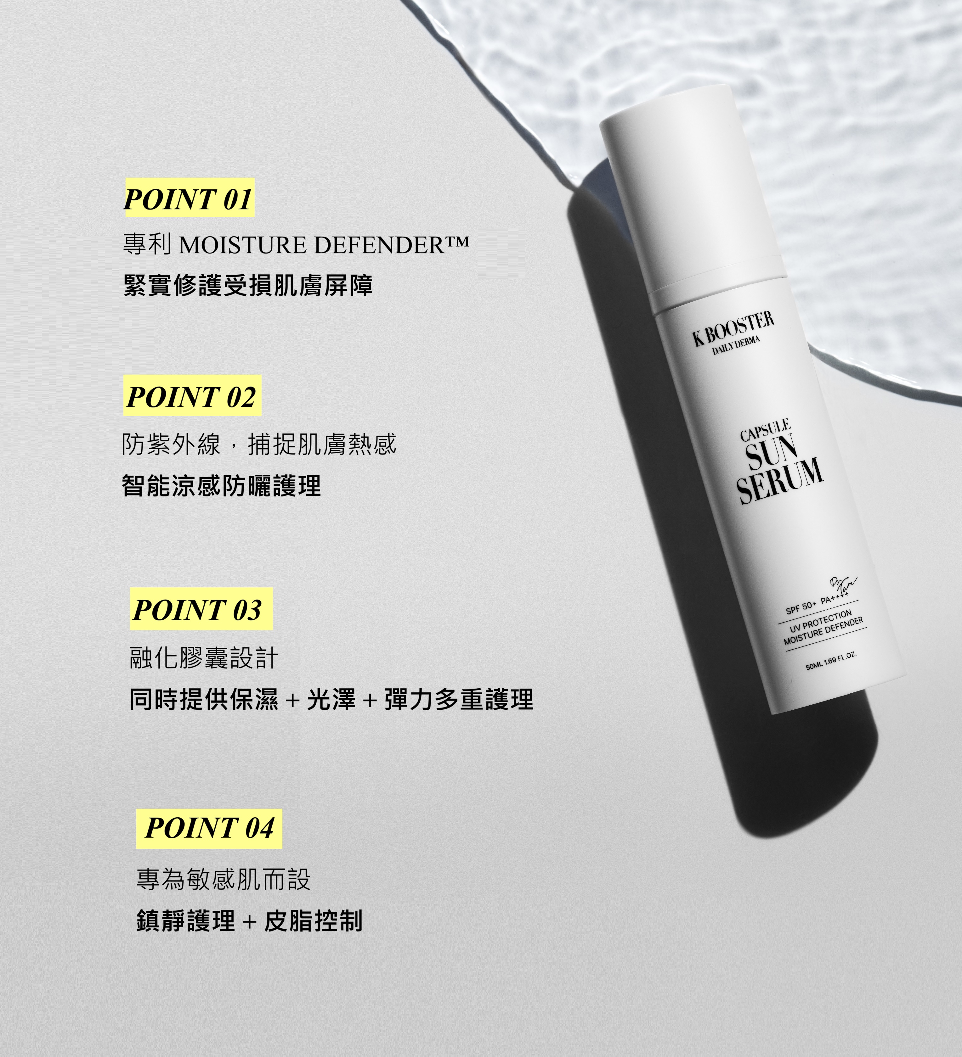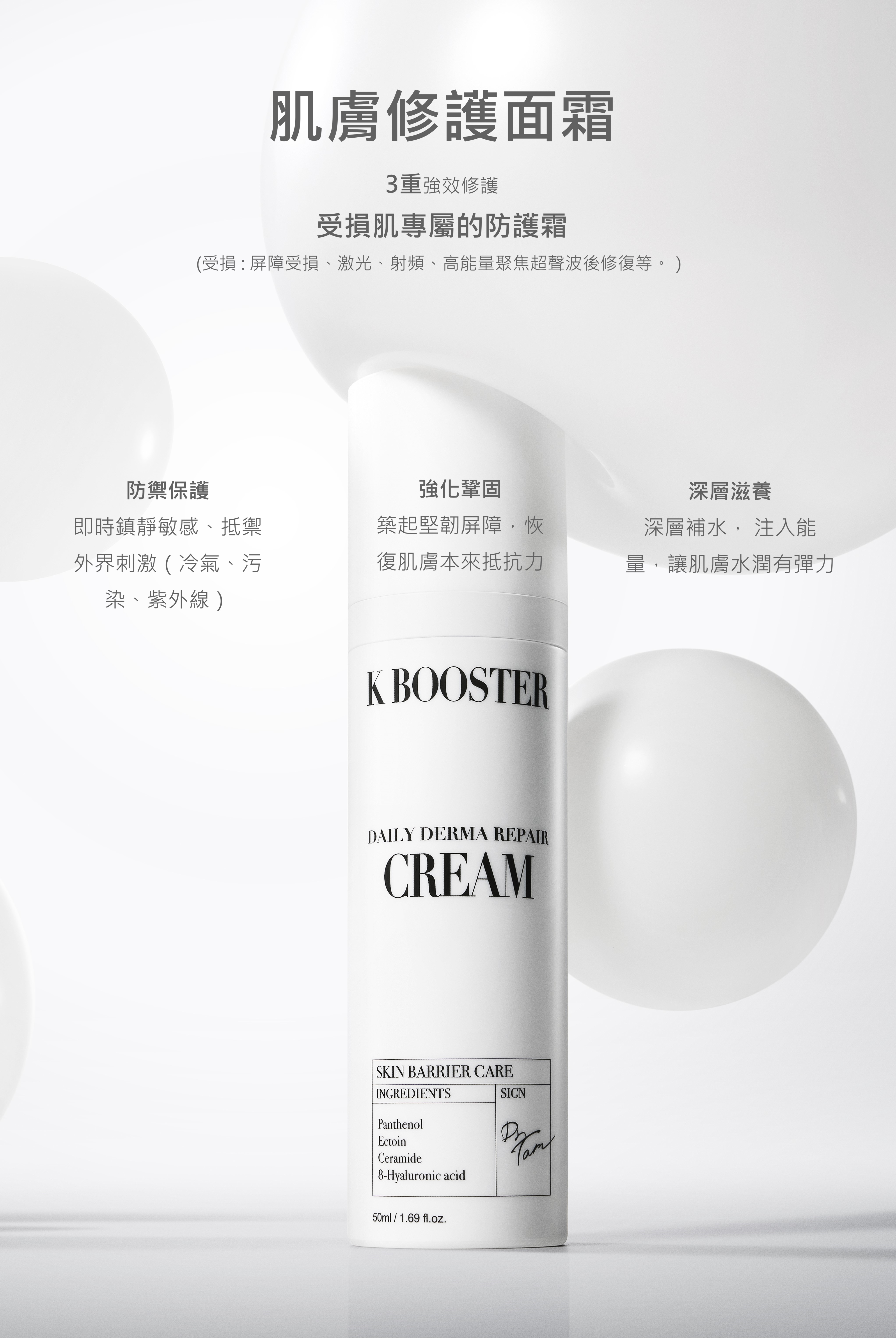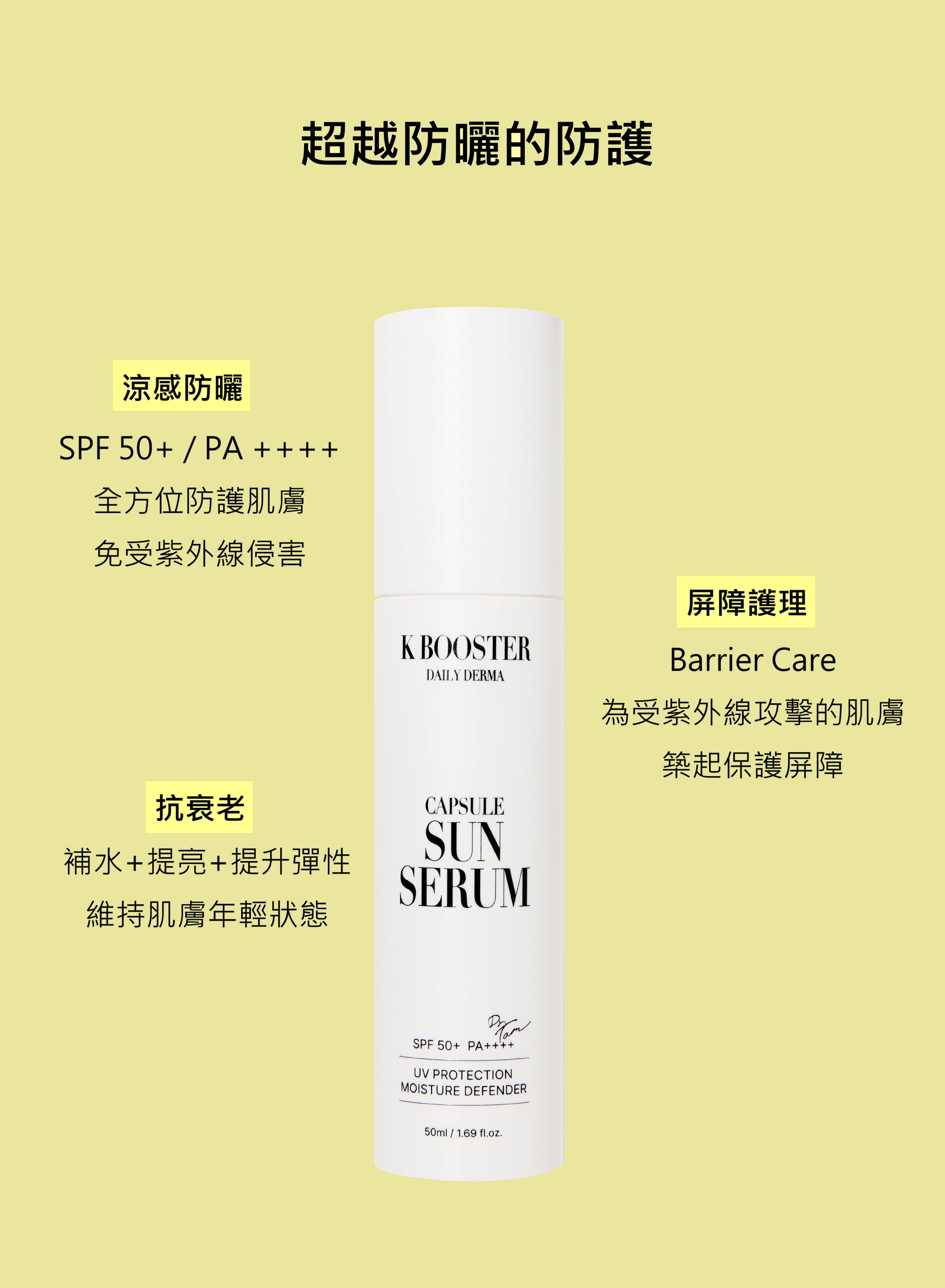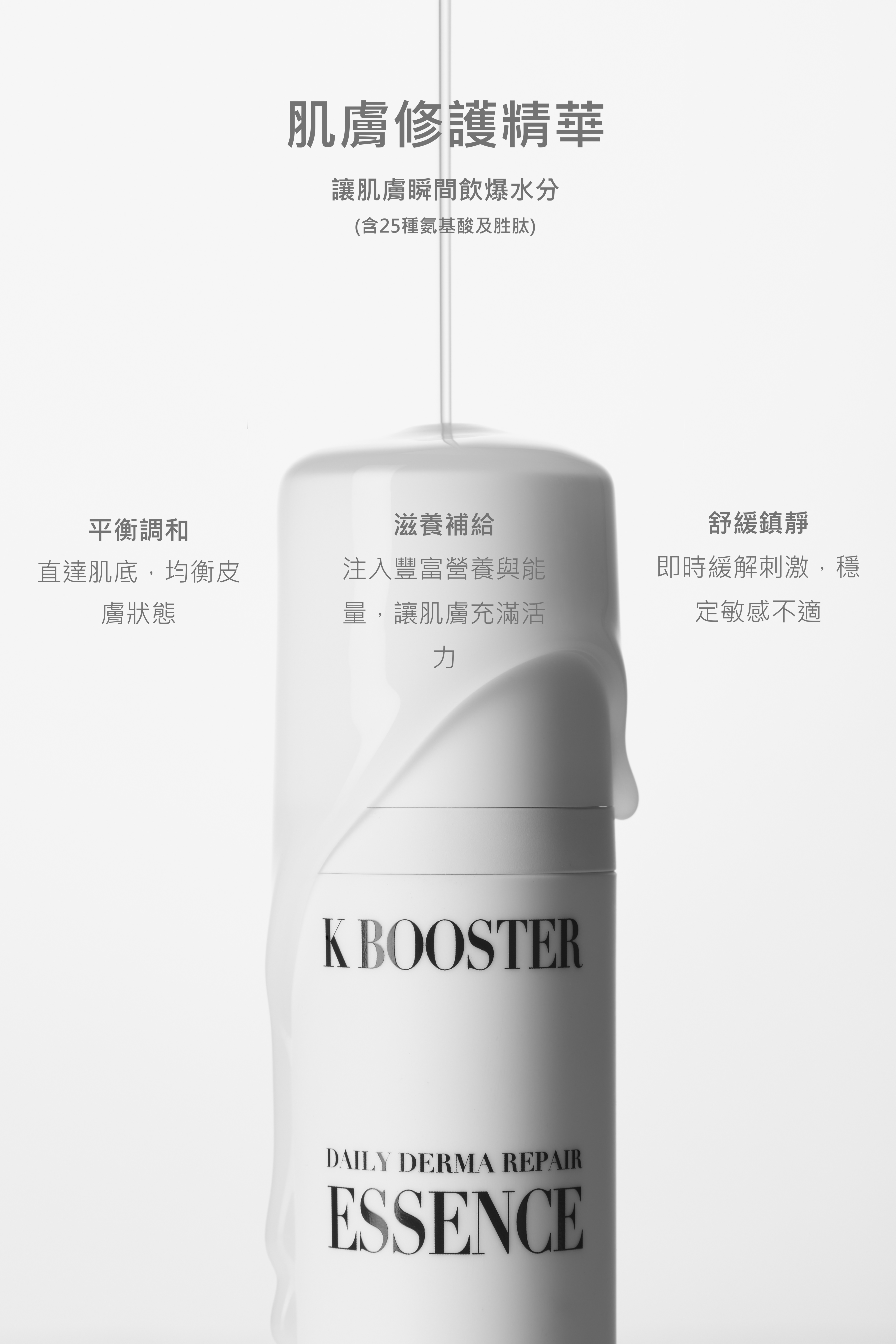 隨時隨地啟動K Booster 3步驟護膚程序,隨身攜帶去旅行、出差、戶外活動。 肌膚修護面霜 15ml 肌膚修護精華 15ml 防曬 15ml