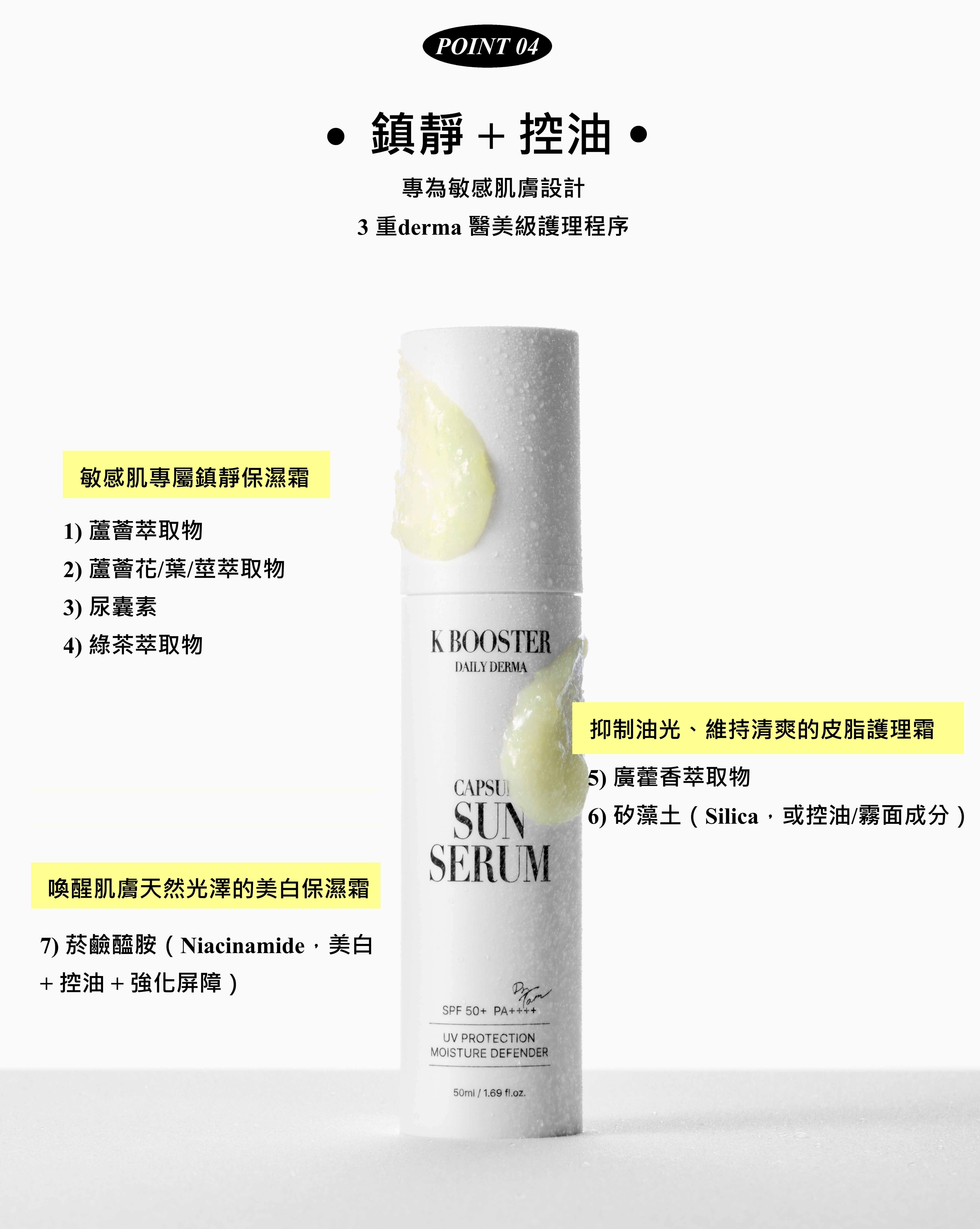 超越防曬的防護:鎮靜+控油+阻隔紫外線。 三重作用:防曬保護、保濕及舒緩護理。 ✓ 臨床證明改善皮脂控制達 20.4%。 ✓ SPF50+ PA++++ 高倍UV防護 ✓ 即時涼感,快速降低肌膚溫度達 -7°C ✓ Moisture Defender™ 專利複合配方,深層鎖水並強化皮膚屏障